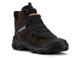 Calçado de segurança tipo bota cor  marrom, confeccionado em couro nobuck de alta qualidade, fechamento através de atacador (cadarço), forro em material não tecido, palmilha de montagem fixada no cabedal pelo sistema strobel, proteção de metatarso externo, palmilha de conforto (calcanheira) em PU macio, solado em Poliuretano (PU) bidensidade canais de escoamento.